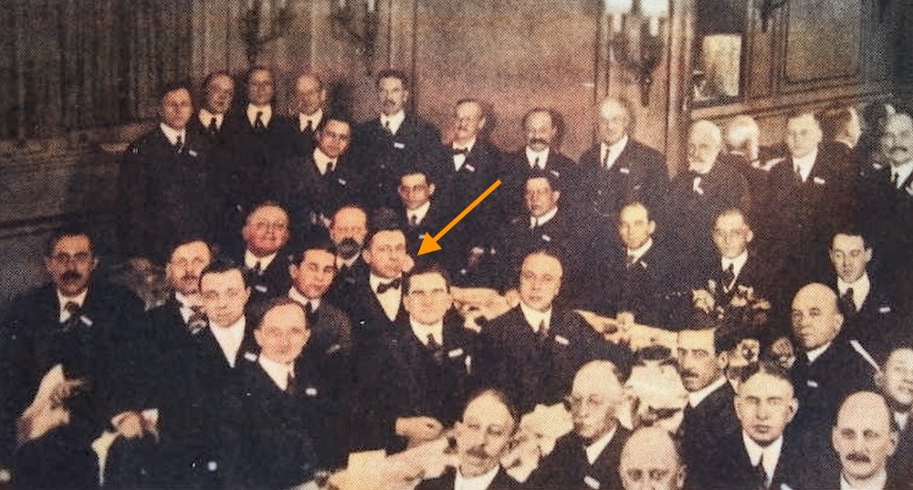 [Charles Pajeau, in the bow tie, attending a toy industry convention in 1917]