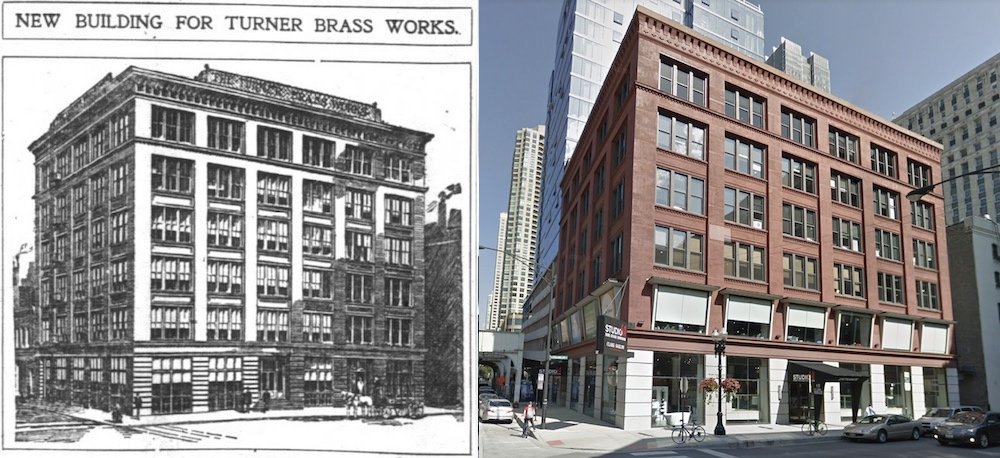 [The former Turner Brass Works plant in Chicago (1901-1907) is still standing, and looking better than ever, at 225 W. Hubbard St.]