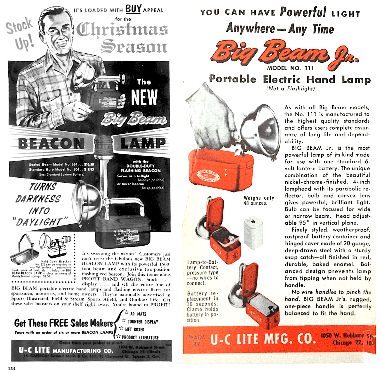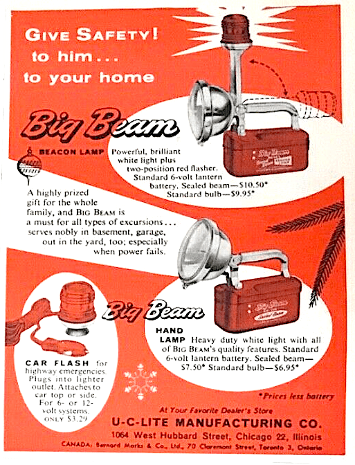 “The BIG BEAM name in emergency lights is probably familiar to you—it has been in use since U-C Lite’s founding in 1938 and has been synonymous with safety and protection of lives and property ever since.” —Citizen Newspaper, McHenry, IL, 1966