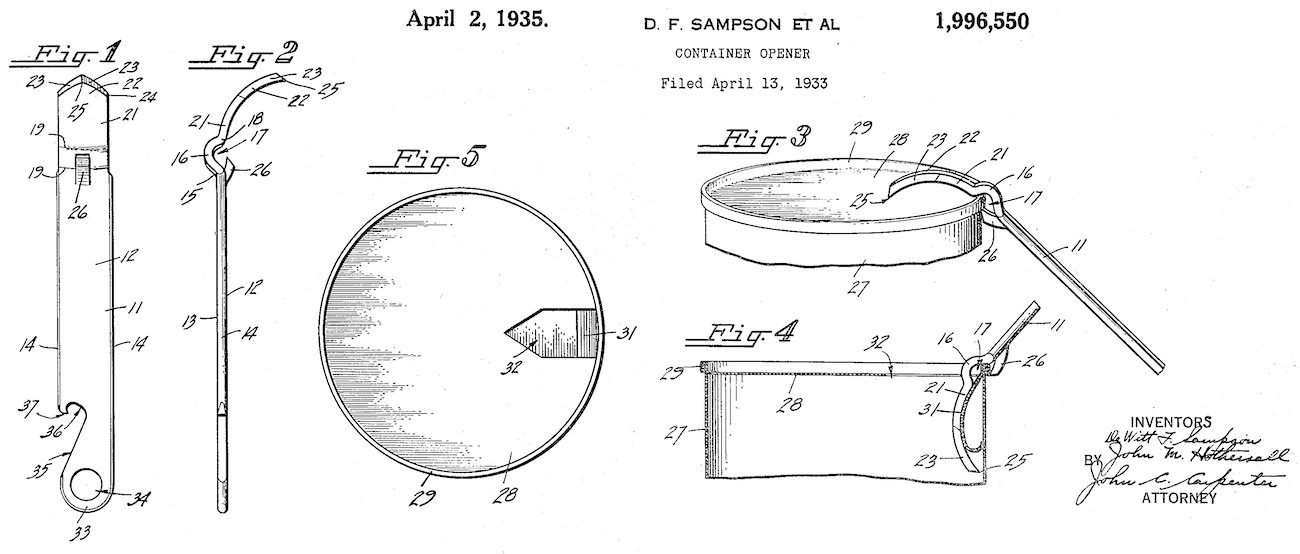“Container Opener” Patent 1,996,550, 1935