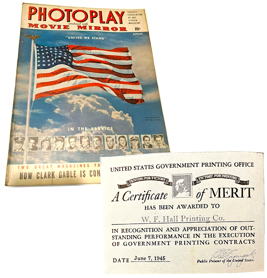 [The influential cinema magazine Photoplay was printed by W. F. Hall from roughly 1915 to 1935, then moved to Hall’s subsidiary, the Art Color Printing Company in New Jersey, during the “Golden Age” of Hollywood. The magazine was owned for over a decade by W. F. Hall’s own top executives, Robert Eastman and Edwin Colvin]