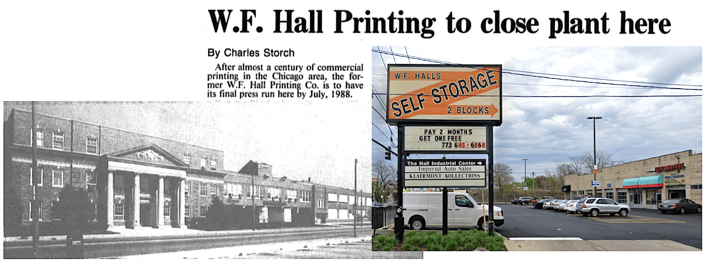 Thanks for a wonderful, informative story. I grew up blocks from the W. F. Hall plant on Normandy. Part of it still stands, repurposed as a Home Depot. The building was originally occupied by Revere Copper & Brass during the war years, then by Western Electric who built a tall, curved concrete stand to test their radar units. Hall Printing’s rise and fall resembles so many other Chicago firms. Good to know Klairmont Kollections and MICM are putting the old space to good use.
