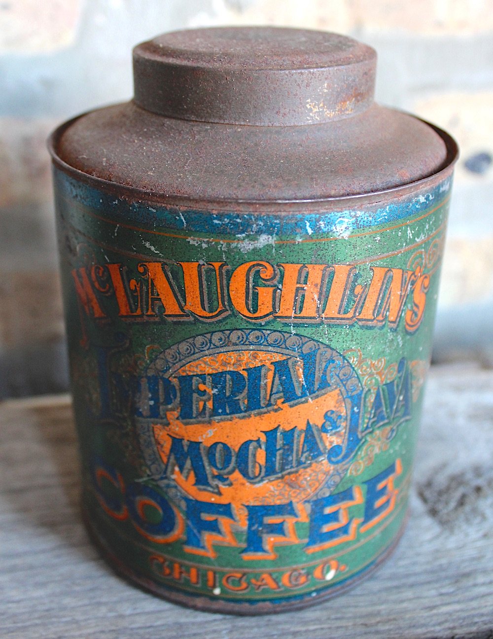 There were plenty of reasons for optimism, too. In the 1910s, McLaughlin’s Coffee had as many as three separate plants in Chicago, with the main hub still on South Water Street. There, new goods were brought in via the river, packaged inside the factory (sometimes into beautiful green tins like the “Imperial Mocha & Java” in our collection), then brought out the other side to the South Water Street market, where closely packed horse-drawn wagons and early automobiles created a chaotic combination of noises and smells. As Castle McLaughlin tells us, however, this era was quickly nearing its end. With the onset of World War I, McLaughlin’s valuable South American properties were suddenly closed off, putting them more on an even footing with everyone else, if not at a disadvantage. “After that,” Dr. McLaughlin says, “the company concentrated on the regional market rather than competing nationally.”