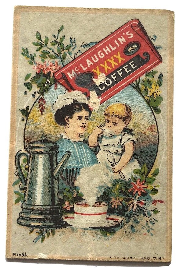 Interestingly, despite producing trade cards celebrating the innocence of childhood, W. F. McLaughlin was not above the trends of the day in terms of employing child labor. In the late 1890s, they were actually adding to their underaged workforce rather than reducing it. Of the 310 people employed at the Chicago warehouse in 1895, a Factory Inspector’s report noted that 107 were children; up from 87 the previous year. “At McLaughlin’s coffee factory,” the report added, “whenever any order requires it, boys pack coffee until 10 or 11 o’clock at night.” That’s not even making any count, of course, of the ages or hours clocked by the people the company had on the payroll in Brazil.