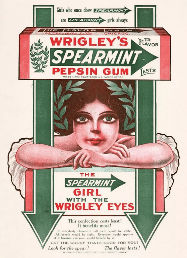 I have three questions about the brand Wrigley Spearmint Gum, for the year 1910 or 1911: