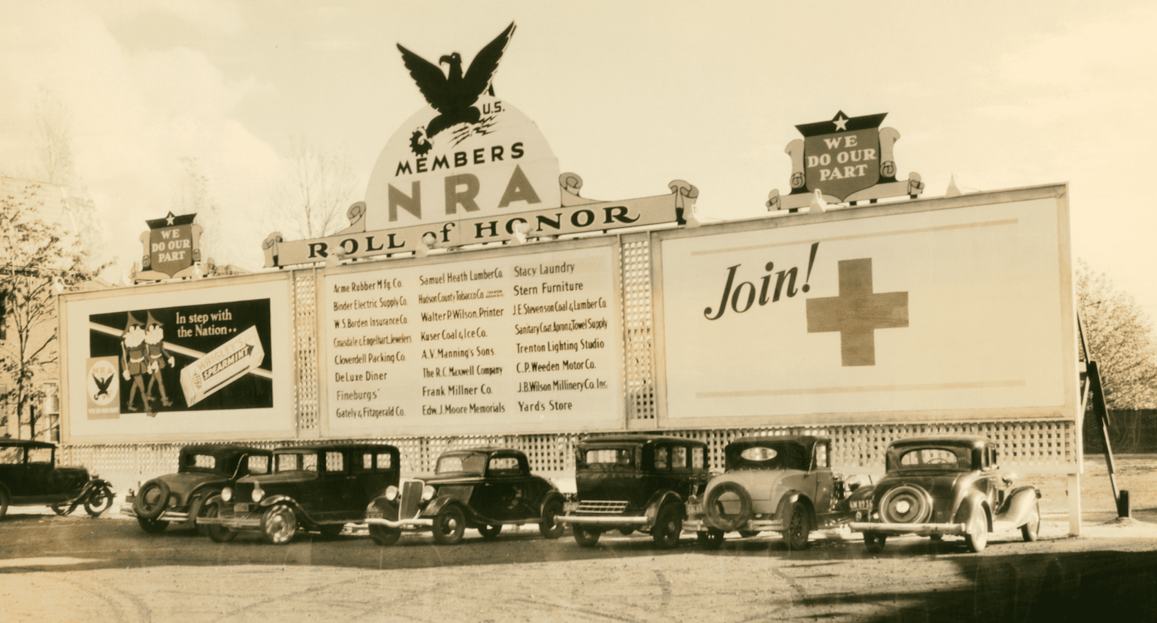 [A Wrigley ad on the left promotes the company’s support for the National Recovery Administration between 1933-1935]