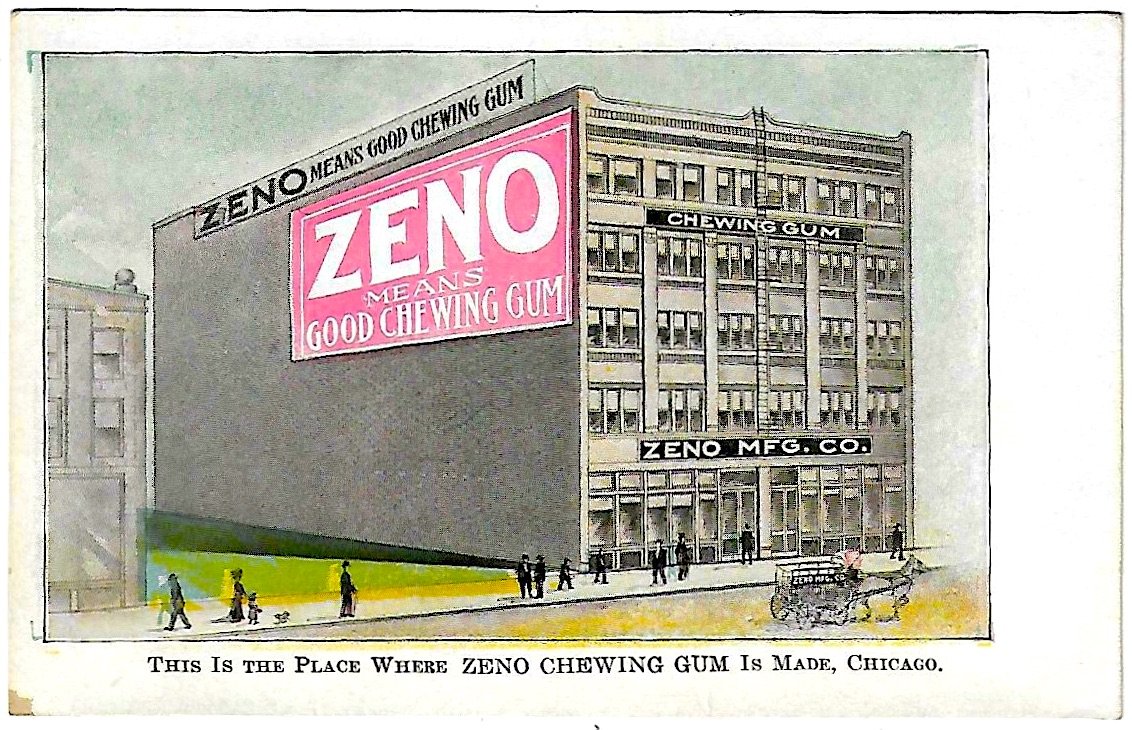 The Zeno MFG Co. was established in Chicago roughly a year before William Wrigley, Jr. arrived, at a time when sugarized chewing gum sticks were just starting to gain traction as the all-day noshable. Compared to its small field of competitors sprouting up in the Midwest, Zeno had the distinct advantage of being a subsidiary of a much larger company—providing a source of funding that no Philadelphian with a soap cart could yet have matched.