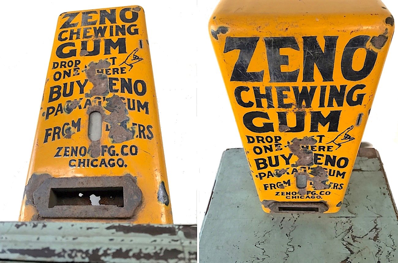 It’s been more than 100 years since someone first dropped a penny into this porcelain-enameled steel vending machine, jonesing for a fresh stick of “elegant” Zeno chewing gum. By no coincidence, most awareness of the Zeno Manufacturing Company itself has long since been spat from the public consciousness and trampled over by time, slowly flattened into a proverbial dark circle in the pavement. The company’s lasting legacy—or that is to say, the only time it’s ever mentioned—is as a footnote in the story of a far grander Chicago confectionery institution: William Wrigley Jr. & Co. If you’re partial to a good prequel, however, this one ain’t half bad.